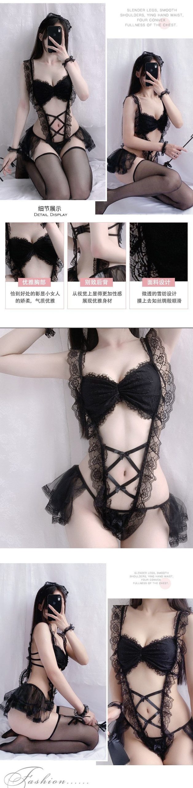 吊带蕾丝花边开档免脱激情女仆套装吊带蕾丝花边开档免脱激情女仆套装
