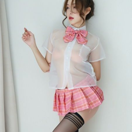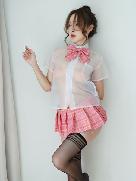 清纯学院风粉色格子学生套装