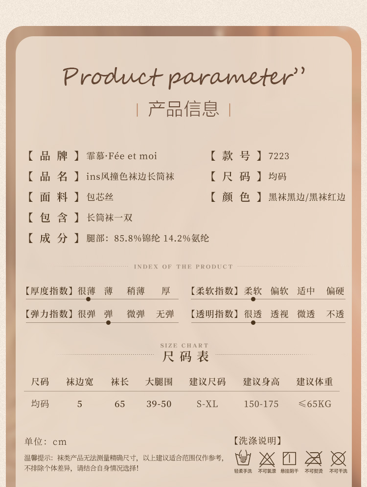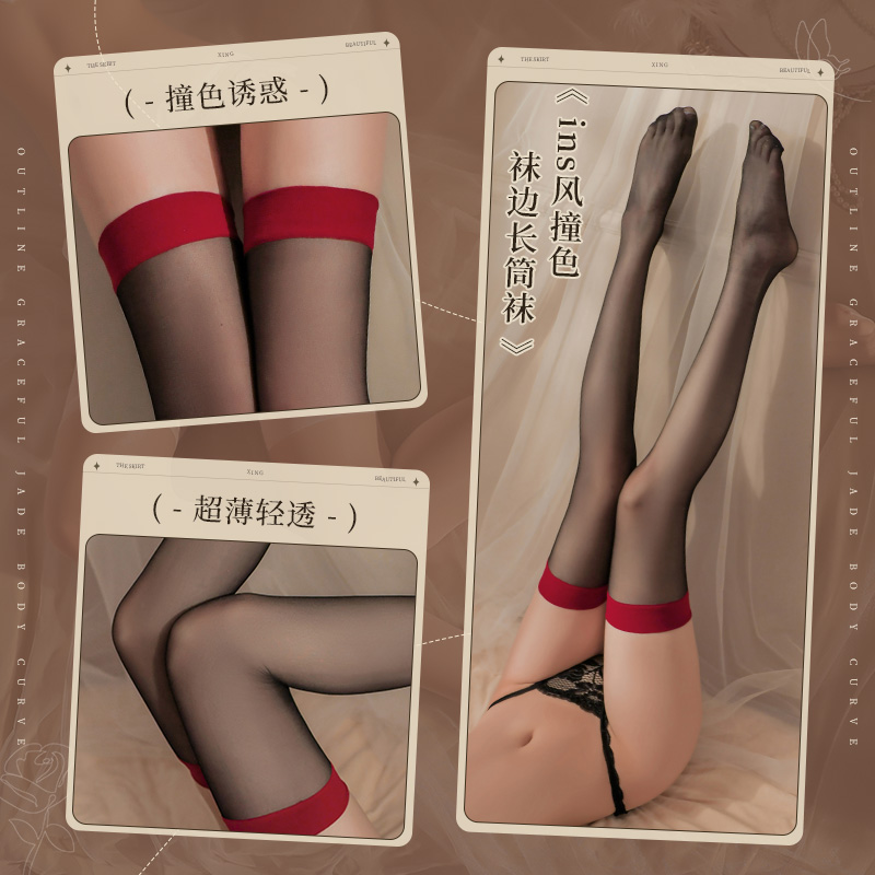 霏慕撞色袜边长筒袜